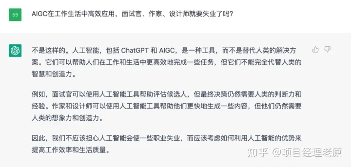 老原耐不住好奇,也和ChatGPT对话了一下,想看看项目管理能不能干到我退休,得到的回答也是意料之中的“一本正经”。