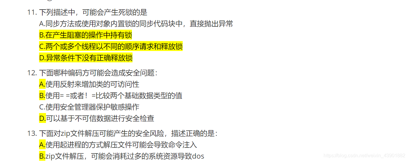 java安全编码规范考试 整理不易,收点币!! 安全编码规范考试.md 下面对zip文件的安全解压缩描述,错误的是 A.zip文件解压时,可以使用entry.getSize()对解压缩文件进行文件大小判断 B.zip文件解压时&…...