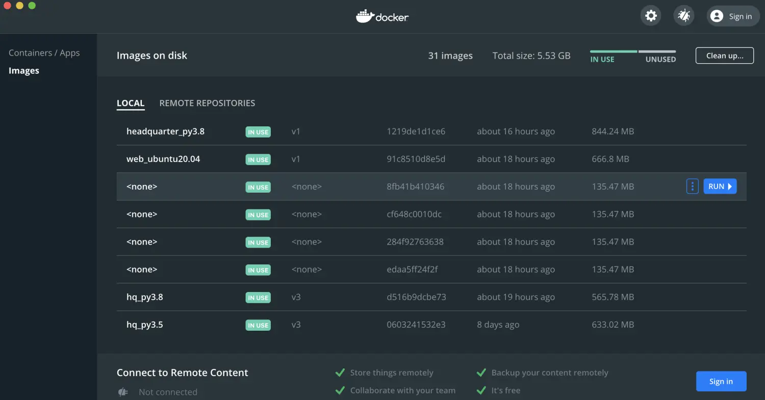 可以看到上图中各种版本的image都有,python3.5的,3.8,web专用的