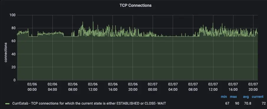 下图是近几天的TCP连接数曲线图: