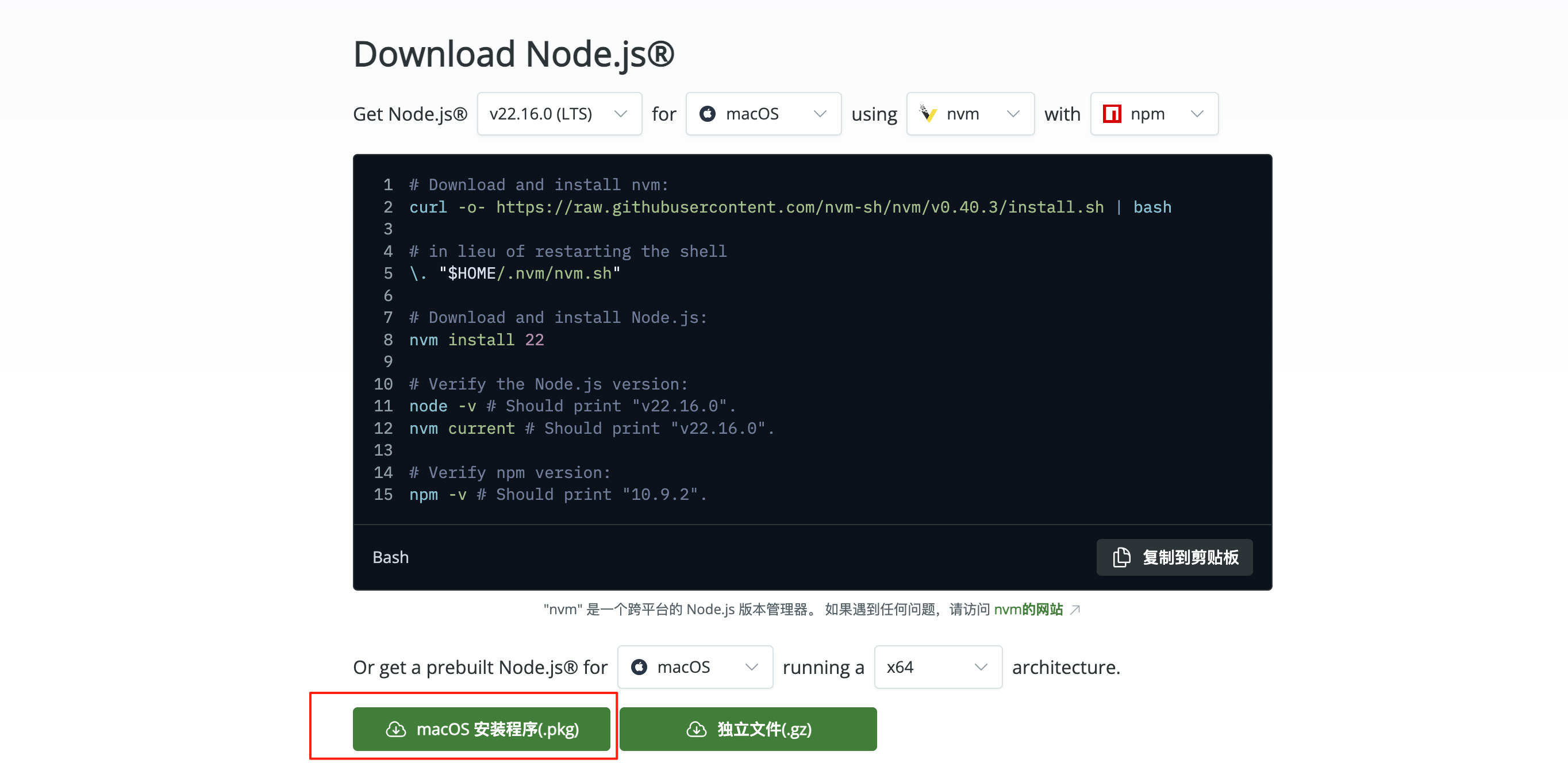 一、安装 Node.js 方式一:官网下载(适合所有系统) 访问 Node.js 官网 推荐选择 LTS(长期支持)版本,点击下载安装包。 根据系统提示一步步完成安装。 方式二:通过包管理器安装(建…...