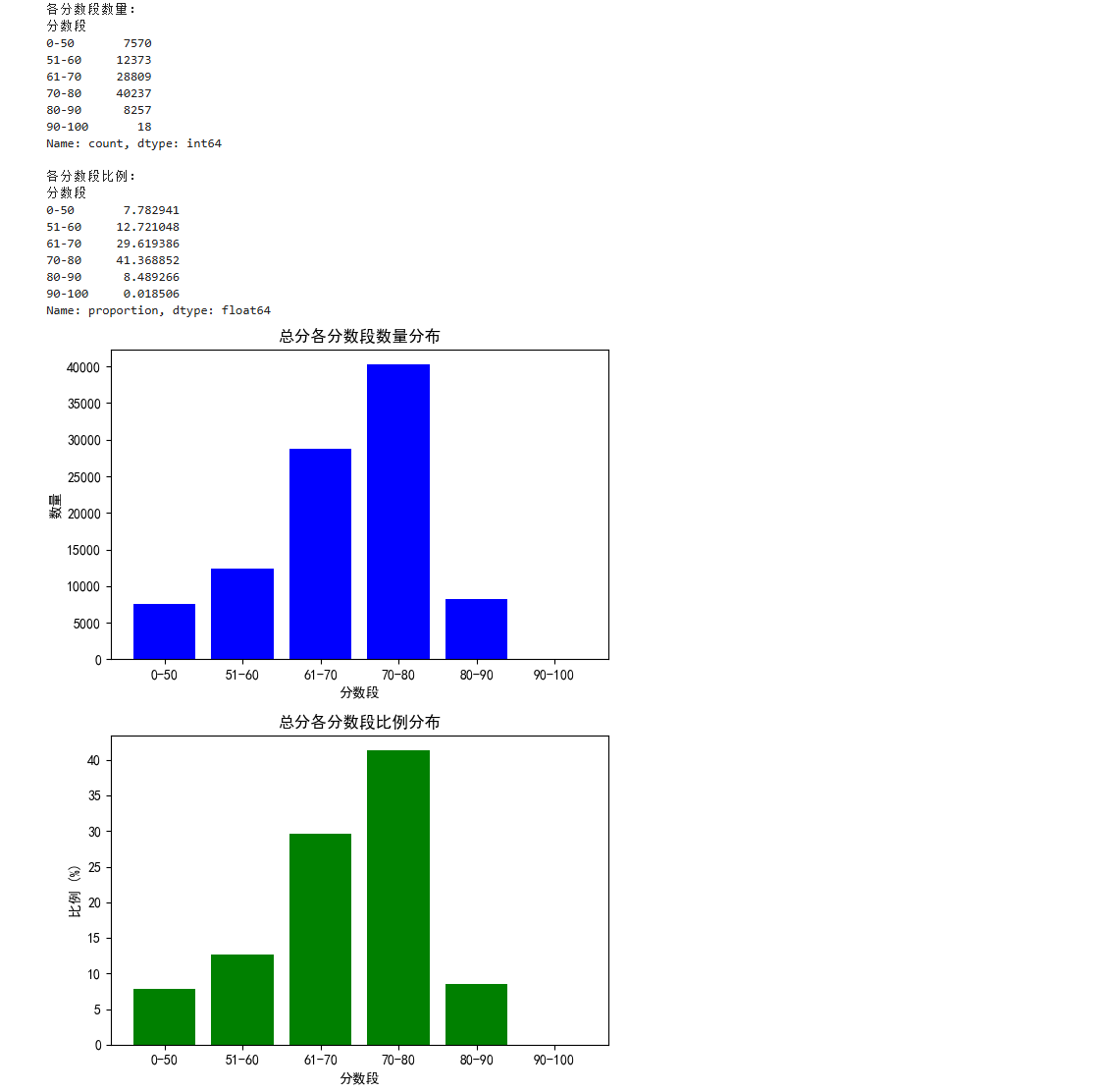 # 统计各个分数段的比例和数量