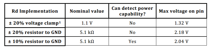 Rd电阻值要求参考下图,使用最低10%精度的5.1K的电阻: