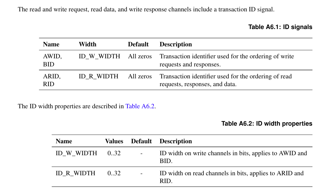 - ID 位宽: 通常为 4-8 位,支持最多 16-256 个并发事务