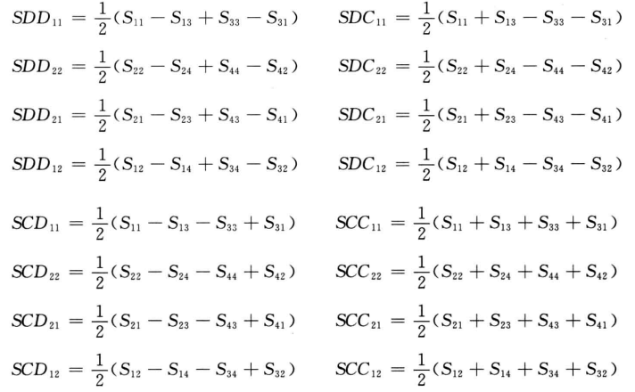 同样的原理可以得出4种组合情况下所有的差分S参数: