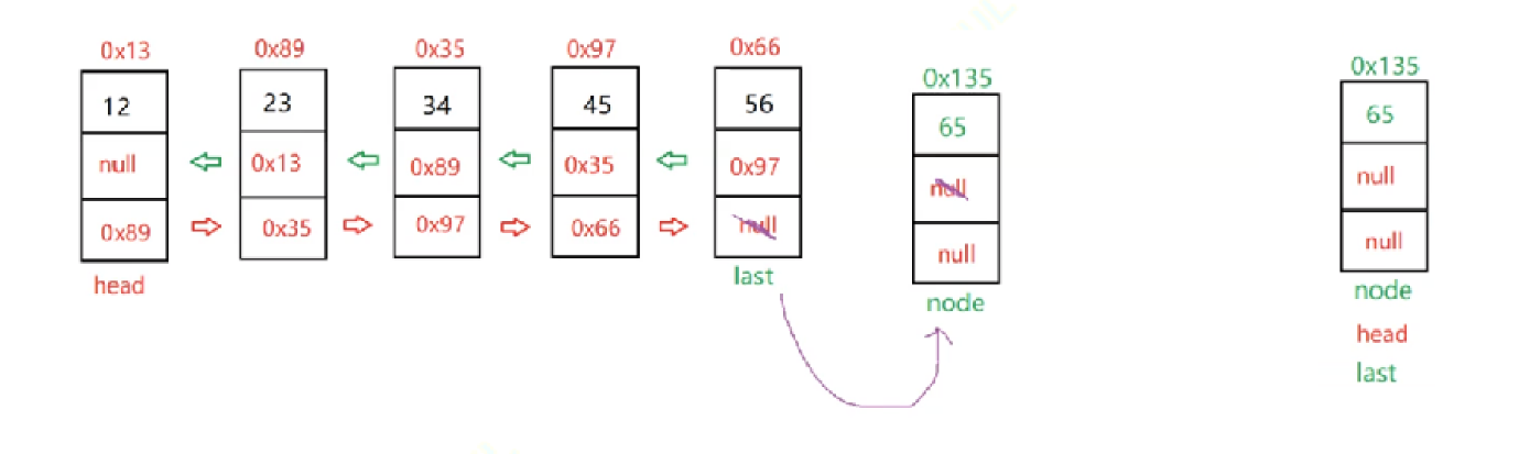 @Overridepublic void addLast(int data) {ListNode node = new ListNode(data);if (head == null) {last = head = node;}else {last.next = node;node.prev = last;last = last.next;}}