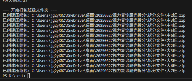 import fitz # PyMuPDFdef chinese_to_digit(chinese_num):"""将中文数字转换为阿拉伯数字。支持一到十的转换。"""chinese_dict = {'一': 1, '二': 2, '三': 3, '四': 4,'五': 5, '六': 6, '七': 7, '八': 8, '九': 9, '十': 10}return chinese_dict.get(chinese_num, chinese_num)def extract_student_info(input_pdf_path, target_pages):"""从PDF中提取学生信息(姓名、年级、班级)"""doc = fitz.open(input_pdf_path)results = []class_pattern = re.compile(r'[((]?(\d+|[一二三四五六七八九十]+)班[))]?')for page_num in target_pages:page = doc.load_page(page_num - 1)text = page.get_text("text")lines = [line.strip() for line in text.split('\n') if line.strip()]name = lines[5].strip() if len(lines) >= 6 else Nonegrade = lines[6].strip() if len(lines) >= 7 else Noneclasses = []for line in lines:matches = class_pattern.findall(line)for match in matches:converted_match = ''.join([str(chinese_to_digit(char)) if char in '一二三四五六七八九十' else char for char in match])if converted_match not in classes:classes.append(converted_match)if name and grade:results.append({"page_num": page_num,"name": name,"grade": grade[0],"class": classes})else:print(f"第{page_num}页缺少必要的信息。")return resultsdef convert_students_info(students):"""格式化学生信息为'大7班_陈宇阳'格式"""return [f"{s['grade']}{''.join(s['class'])}班_{s['name']}" for s in students]def split_pdf_every_2_pages(input_pdf_path, output_folder, formatted_names):"""将PDF每两页分割成单独文件"""if not os.path.exists(output_folder):os.makedirs(output_folder)reader = PdfReader(input_pdf_path)total_pages = len(reader.pages)num_files = (total_pages + 1) // 2for i in range(num_files):writer = PdfWriter()start_page = i * 2end_page = min(start_page + 2, total_pages)for page_num in range(start_page, end_page):writer.add_page(reader.pages[page_num])base_filename = formatted_names[i] if i < len(formatted_names) else f"P{start_page+1}-P{end_page}"output_filename = os.path.join(output_folder, f"{i+1:03}_{base_filename}_屈光复查202505.pdf")with open(output_filename, "wb") as out:writer.write(out)print(f"已创建: {output_filename}")def classify_pdfs_by_class(source_folder):"""将PDF文件按班级分类到不同文件夹"""pdf_files = [f for f in os.listdir(source_folder) if f.lower().endswith('.pdf')]if not pdf_files:print(f"在文件夹 {source_folder} 中没有找到PDF文件")returnclass_stats = {}for pdf_file in pdf_files:match = re.search(r'(中\d+班|大\d+班)', pdf_file)if match:class_name = match.group(1)class_folder = os.path.join(source_folder, class_name)os.makedirs(class_folder, exist_ok=True)src_path = os.path.join(source_folder, pdf_file)dest_path = os.path.join(class_folder, pdf_file)shutil.move(src_path, dest_path)print(f"移动文件: {pdf_file} -> {class_folder}")class_stats[class_name] = class_stats.get(class_name, 0) + 1else:print(f"无法从文件名 {pdf_file} 中提取班级信息")print("\n分类完成,统计结果:")for class_name, count in class_stats.items():print(f"{class_name}: {count}个文件")return class_stats.keys()def zip_class_folders(source_folder, class_folders):"""将班级文件夹打包为ZIP压缩包"""print("\n=== 开始打包班级文件夹 ===")for folder_name in class_folders:folder_path = os.path.join(source_folder, folder_name)zip_path = os.path.join(source_folder, f"{folder_name}.zip")with zipfile.ZipFile(zip_path, 'w', zipfile.ZIP_DEFLATED) as zipf:for root, dirs, files in os.walk(folder_path):for file in files:file_path = os.path.join(root, file)arcname = os.path.relpath(file_path, folder_path)zipf.write(file_path, arcname)print(f"已创建压缩包: {zip_path}")def main():# 设置路径base_path = r'C:\Users\jg2yXRZ\OneDrive\桌面\20250527视力复诊屈光拆分'input_pdf = os.path.join(base_path, "复诊通知XXXX.pdf")output_dir = os.path.join(base_path, "拆分文件")# 第一步:拆分PDFprint("=== 开始拆分PDF ===")os.makedirs(output_dir, exist_ok=True)doc = fitz.open(input_pdf)odd_pages = [p for p in range(1, len(doc) + 1) if p % 2 != 0]students_info = extract_student_info(input_pdf, odd_pages)formatted_list = convert_students_info(students_info)split_pdf_every_2_pages(input_pdf, output_dir, formatted_list)print("PDF拆分完成!\n")# 第二步:分类PDFprint("=== 开始分类PDF ===")class_folders = classify_pdfs_by_class(output_dir)print("PDF分类完成!")# 第三步:打包文件夹zip_class_folders(output_dir, class_folders)if __name__ == "__main__":main()