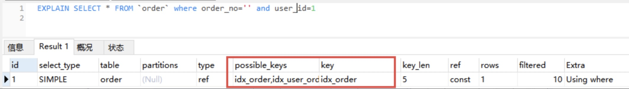 组合查询:order_no、order_no+status、order_no+status+user_id、order_no+user_id 可以利用到索引。