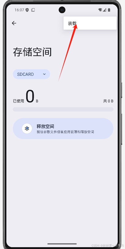 右上角选择弹出(如果已经弹出选择装载),弹出后重新进入该界面继续选择sdcard,选择装载