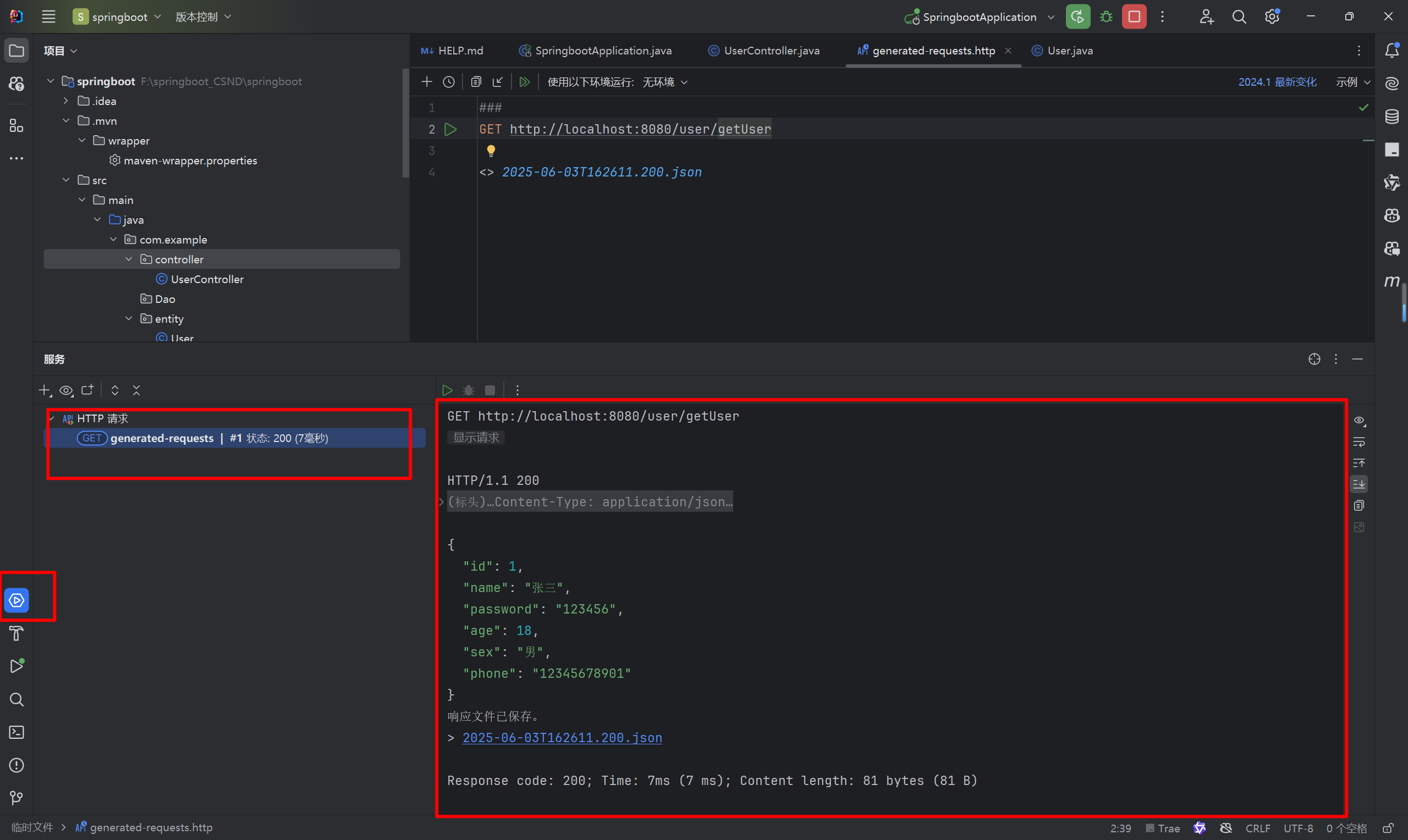 generated-requests.http中的 URL 与实际服务端口、路径一致。若修改过server.port或控制器注解路径,需重新触发 “在 HTTP 客户端中打开” 更新模板。