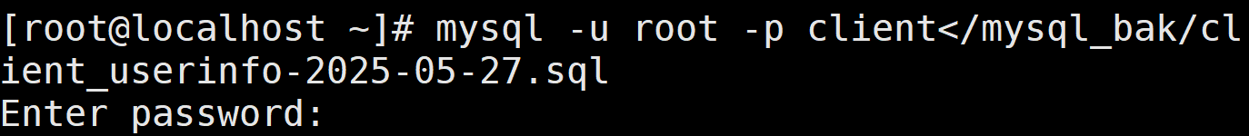 使用 mysqldump 命令导出的 SQL 备份脚本,在需要恢复时可以通过 mysq1命令对其进行导入操作,命令格式如下所示。