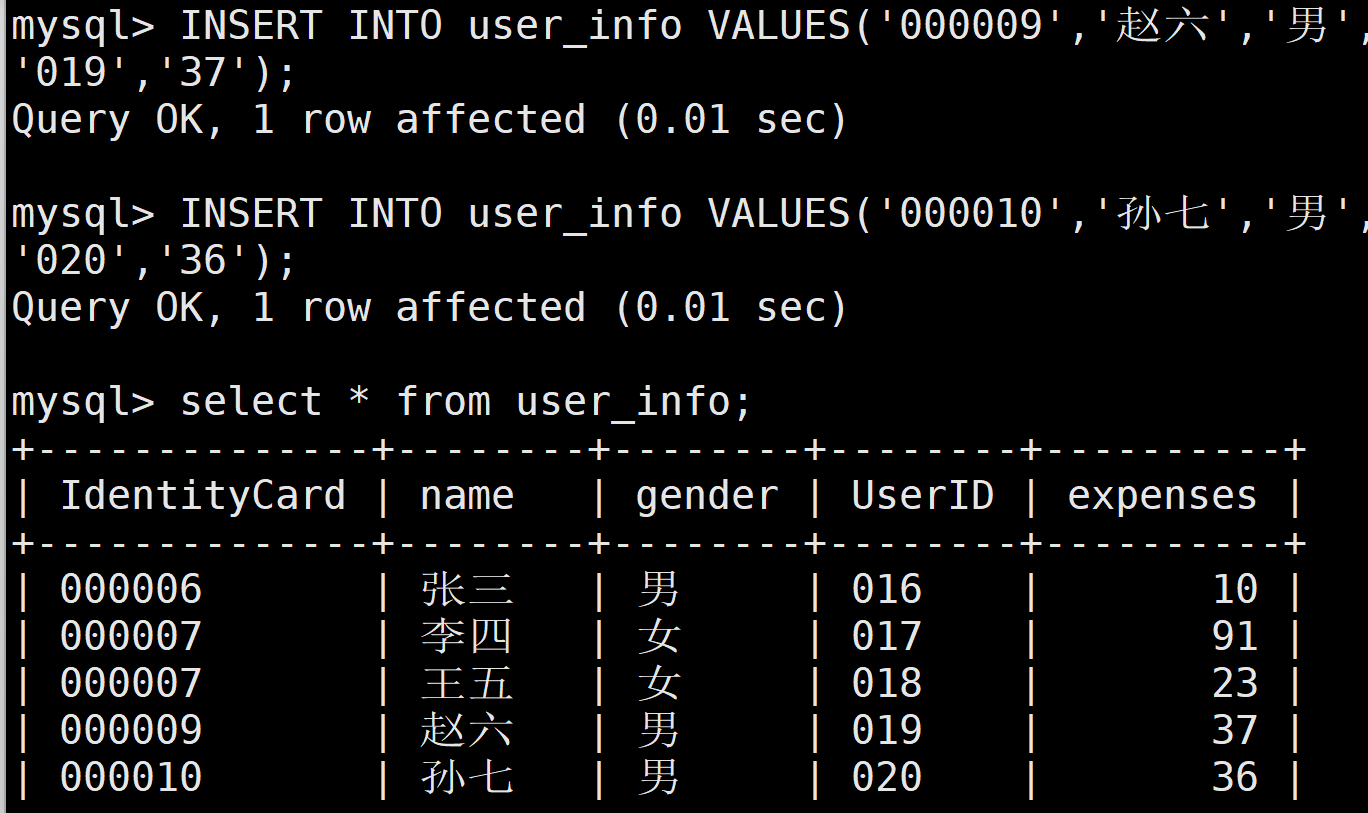 | 身份证 | 姓名 | 性别 | 用户ID号 | 资费 |