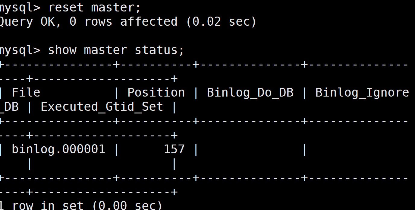 [root@localhost ~]#mysql -u root p e "RESET MASTER;'