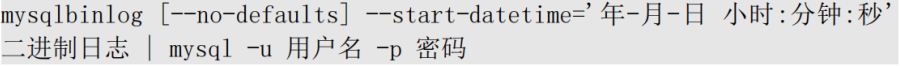 一般恢复:将所有备份的二进制日志内容全部恢复,命令格式如下所示