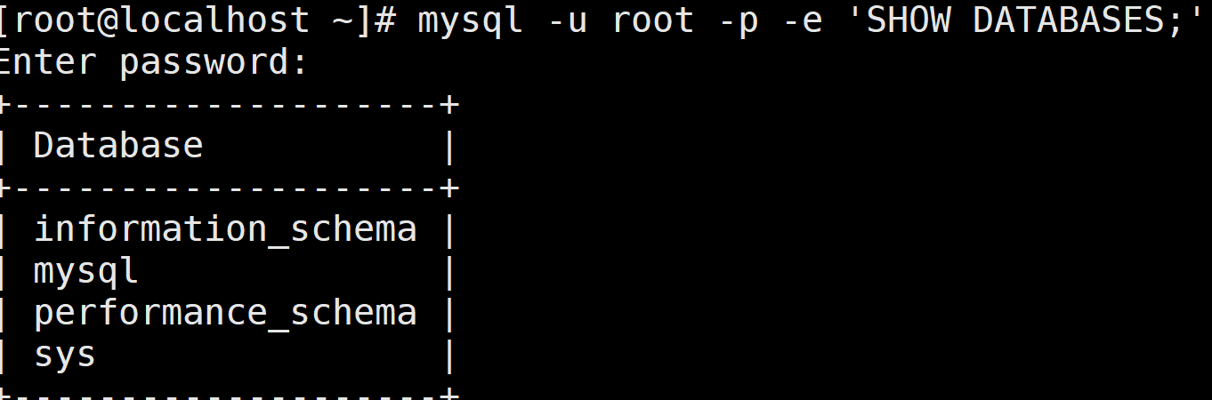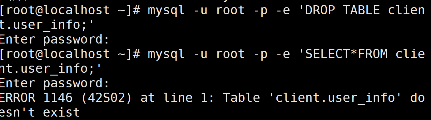 [root@localhost ~]#mysql -uroot -p -e 'select *from test.user,'