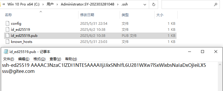 根据路径打开文件id_ed25519.pub,复制其中的内容: