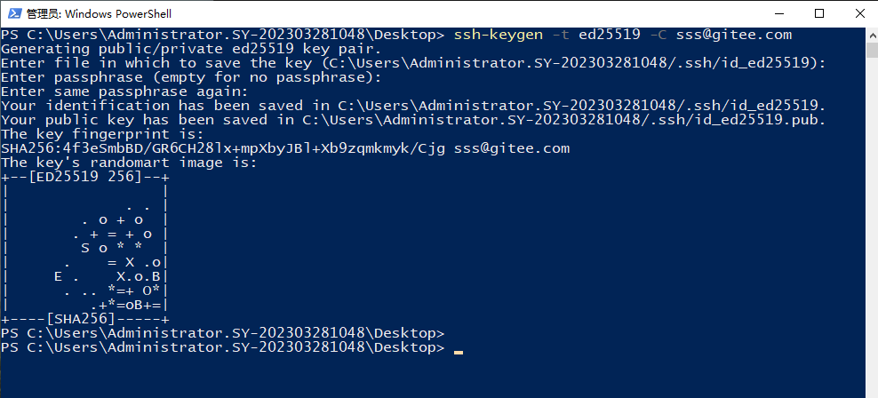 ssh-keygen -t ed25519 -C sss@gitee.com