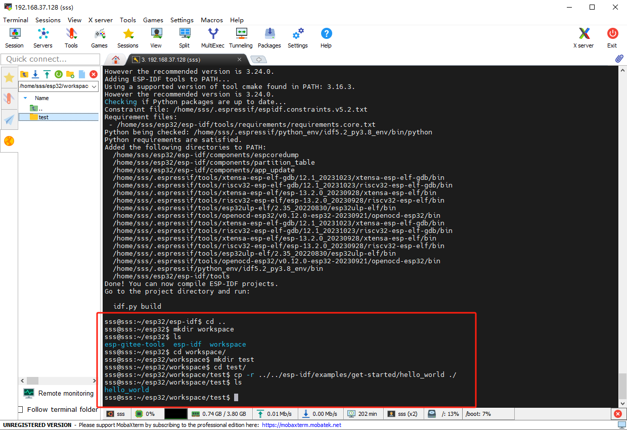 在esp-idf路径中执行下述命令,会自动把esp-idf的环境变量设置到当前环境变量路径中: