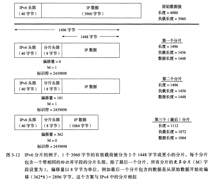 | 标识与分片 | 支持分片 | 通过扩展头部处理 |