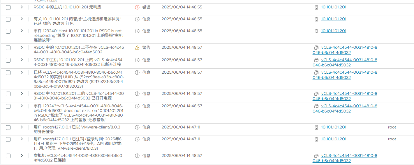 经过初步排查掉网络原因,集群配置原因等(包括重启,重新添加主机)过后,把问题基本先定位在vCenter和ESXi之间的存活检测上,并开始逐步排查修复