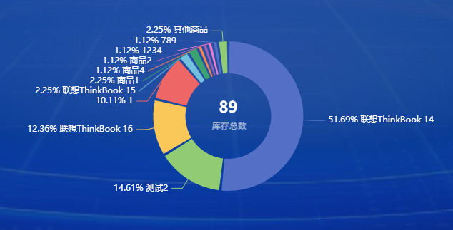 this.chart.setOption({tooltip: {trigger: 'item',},graphic: { // 重点在这里(显示饼图中间文字)type: 'text',left: 'center',top: '42%',style: {text: '{total|' + this.chartData[0].stock + '}' + '\n\r' + '{active|库存总数}',textAlign: 'center',rich: {total: { // 库存数量:89 (this.chartData[0].stock)fontSize: 22,fill: '#FFFFFF',fontWeight: 'bold',},active: { // "库存总数"文字fontSize: 12,fill: 'rgba(255, 255, 255, 0.6)',lineHeight: 30,},},},},series: [{name: '',type: 'pie',radius: ['40%', '70%'],avoidLabelOverlap: true, // 开启避免重叠padAngle: 2, // 扇区间隙label: { // 标签position: 'outer',formatter: '{d}% {b}', // 标签为: 百分比 + namecolor: '#fff',},data: _data,},],