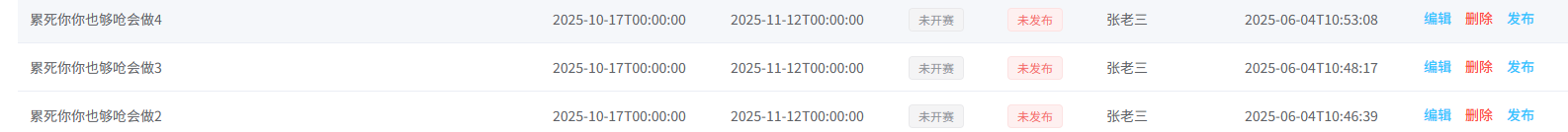竞赛:添加竞赛,竞赛中的题目信息添加,查询题目,竞赛编辑,删除.以及竞赛的发布和撤销发布
