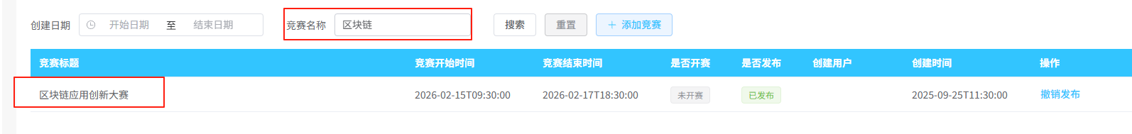 输入竞赛完整名称是否会完成搜索,搜索成功