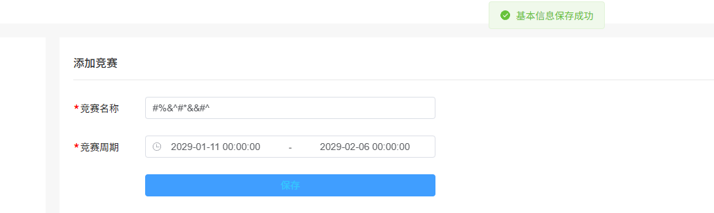 竞赛名称包含特殊字符是否可以创建,这里并没有对竞赛名称限制,后续需考虑