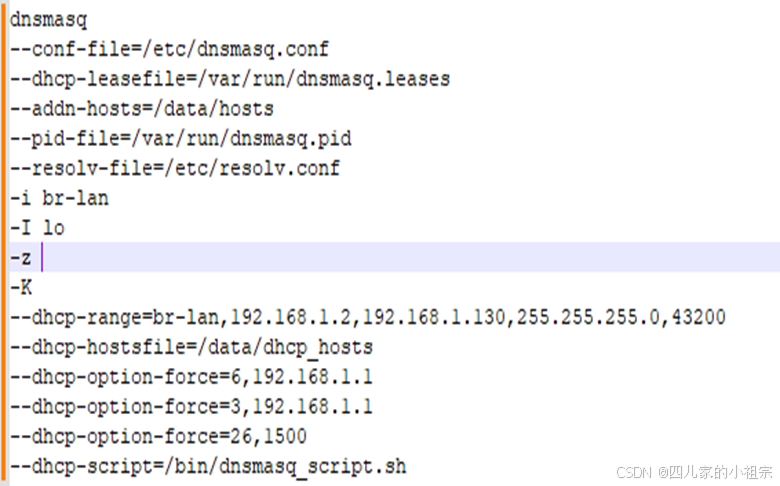 - -i 绑定接口br-lan,即只在br-lan口提供dhcp服务