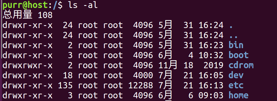 - 白色为普通文件,蓝色为目录,红色为压缩文件,绿色为可执行文件,浅蓝色为链接文件
