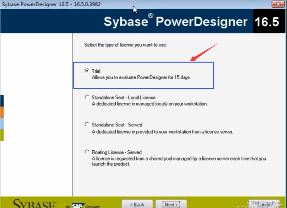 3、选择Trial(意思是试用15天这里不用管它),再点击Next