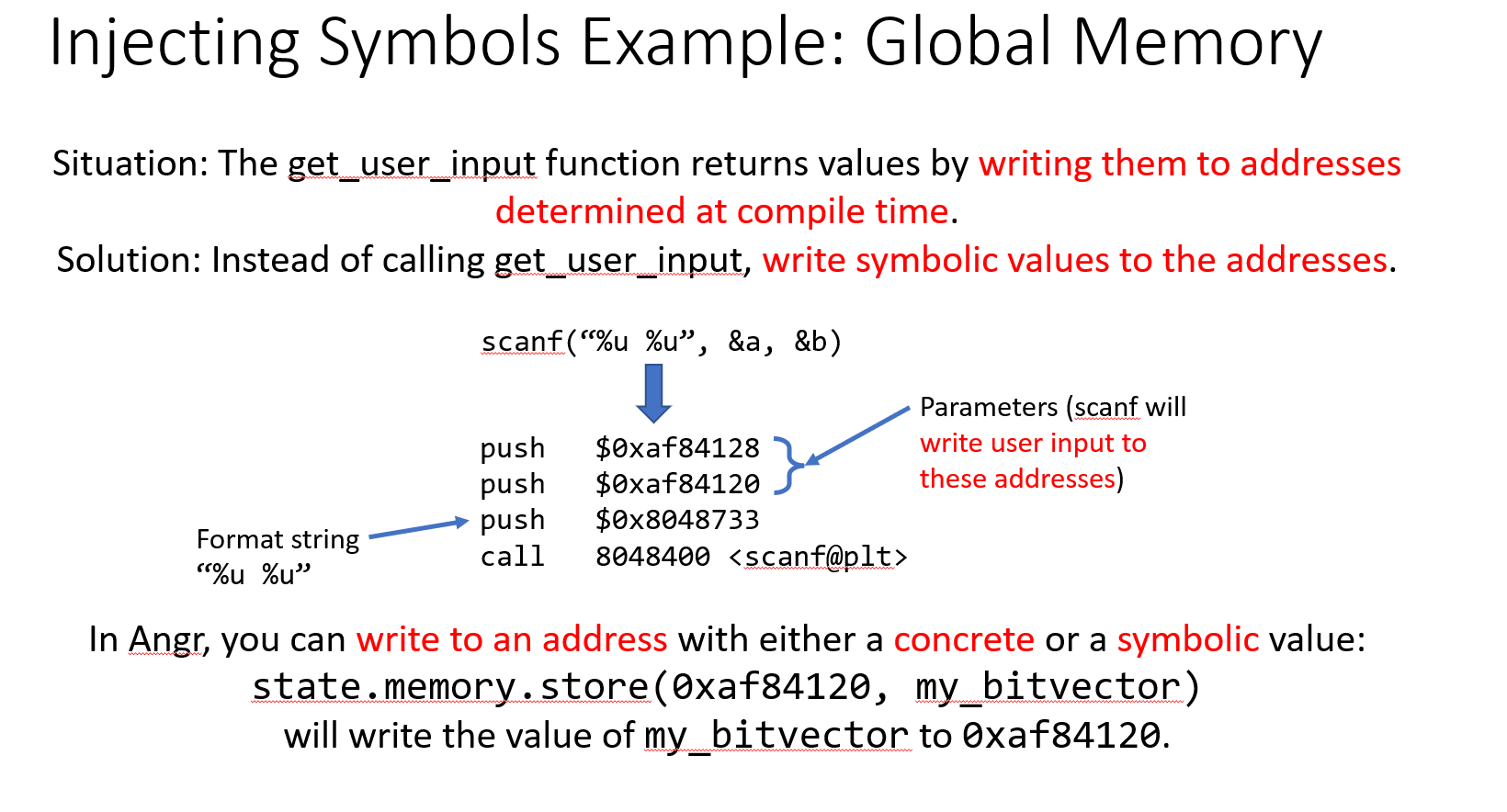然后我们需要指定程序读入后存储的位置,这个是为了后续添加限制条件时对比,这里的password_address在上面也定义了,在创建符号向量时