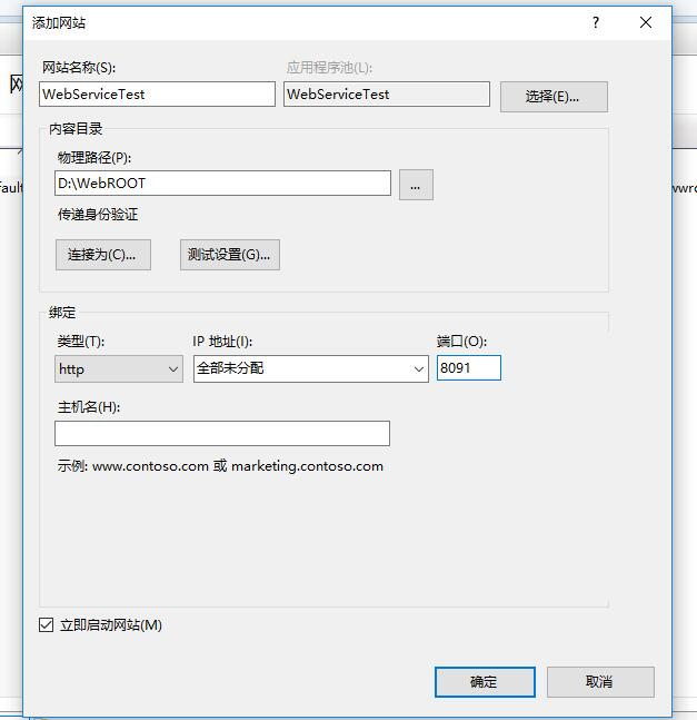 2.把WebROOT整个目录发布到IIS作为一个站点服务,输入网站名称,目录地址,和端口号,勾选立即启动