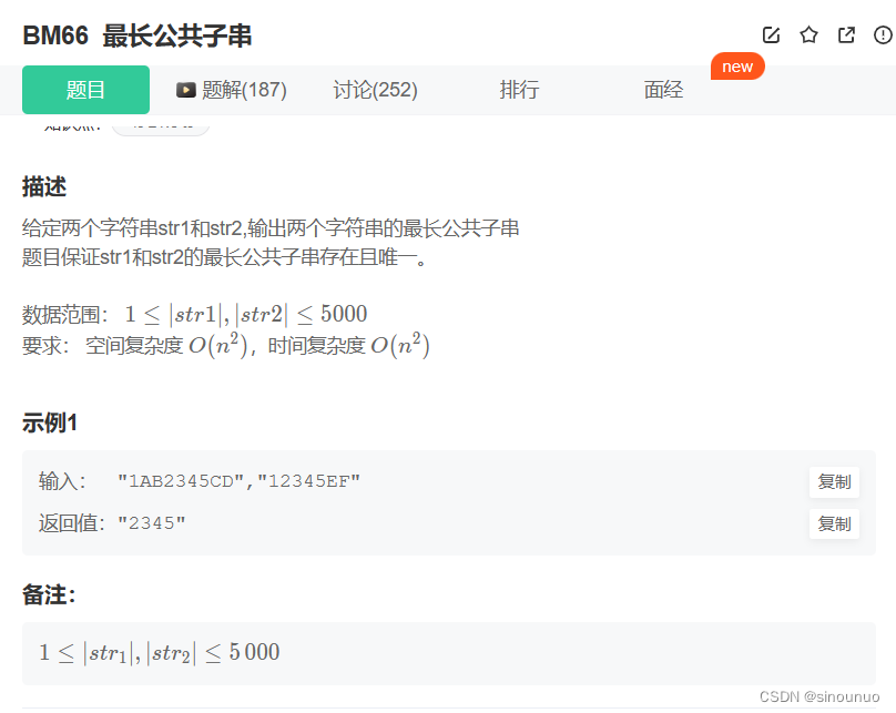 但是这个方法会超时,可以使用值遍历一次的方法,寻找一个index,使得s1[index-maxlen,index+1]在s2中,更新maxlen和res继续寻找。