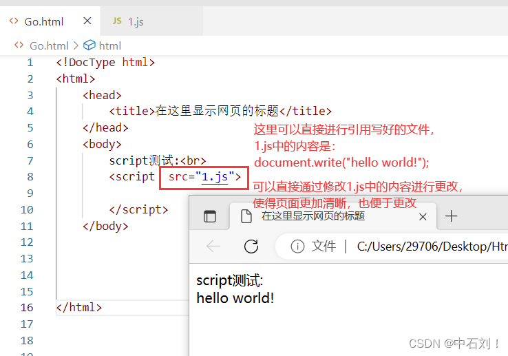 - < script type= “text/javascript” src= "./test.js” >< /script >