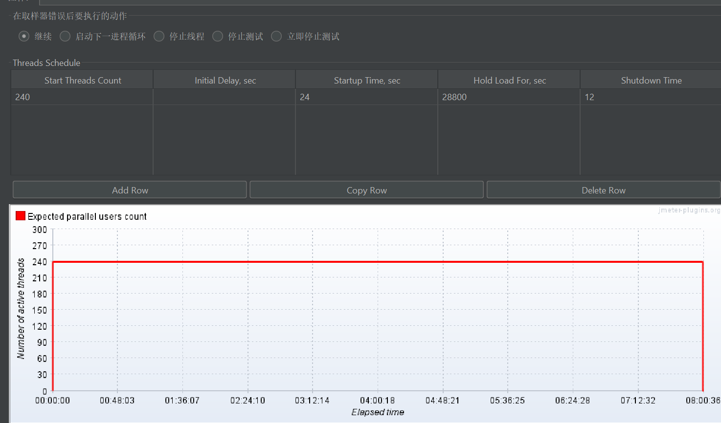 单场景并发测试的设计比较简单,就是在线程组设置中设置若干数量的线程数。这里我们通过Custom Thread Groups插件来更好体现线程组设计。