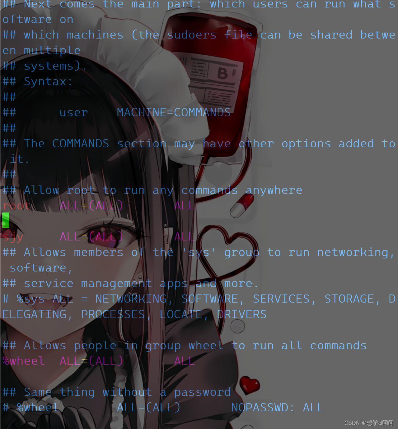 所以我们接下来需要将test用户添加至sudoer的名单中