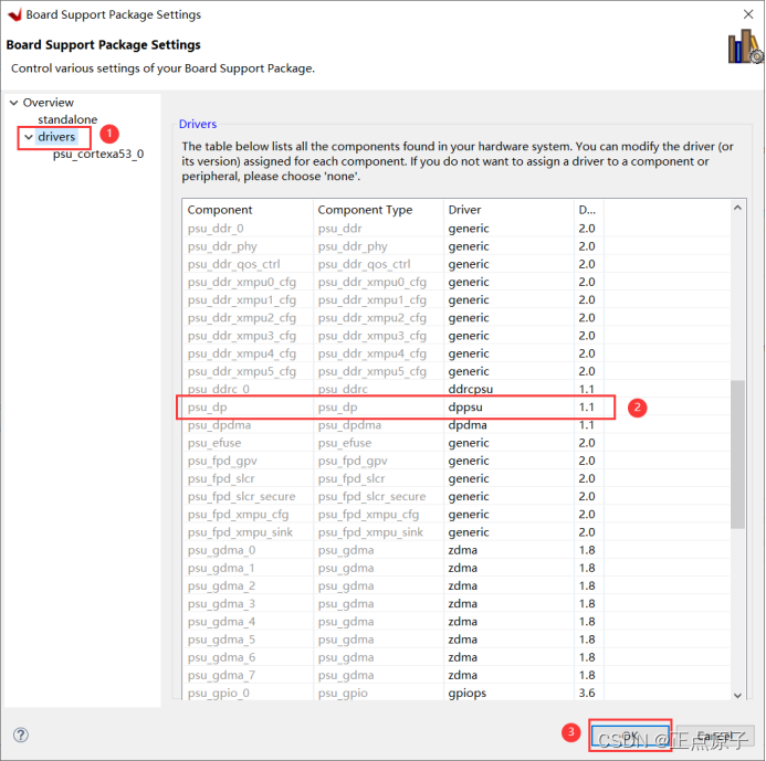 这里只需要将psu_dp选项的驱动改成dppsu就可以了。关于psu_dp驱动的选择Xilinx官方给出了如下的解释: