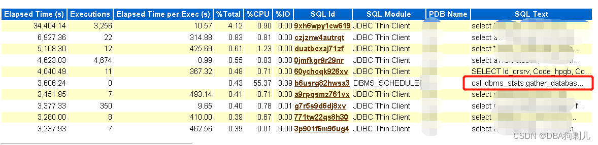 在实际工作中发现一个问题,在工作日导出的下午2点awr报告中,发现存在 call dbms_stats.gather_database_stats_job_proc ( ) 明显是一个数据库自动化的任务,经过查询是统计信息任务,比较奇怪的是统计信息怎么会在下午2点进行运行呢?