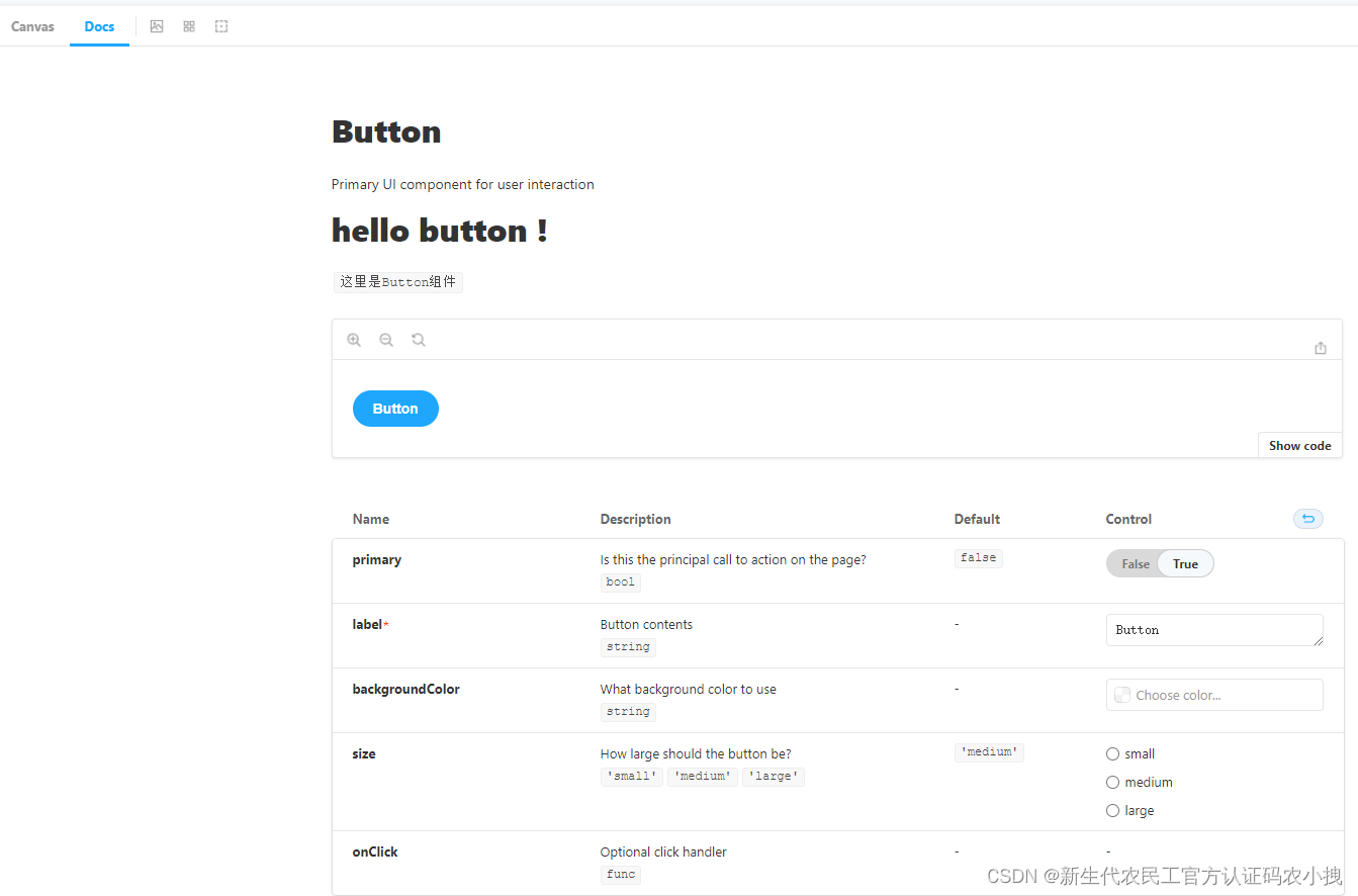 而且,Button.propTypes中的注释,会被直接当作控制面板中描述(Description)参数的文案。