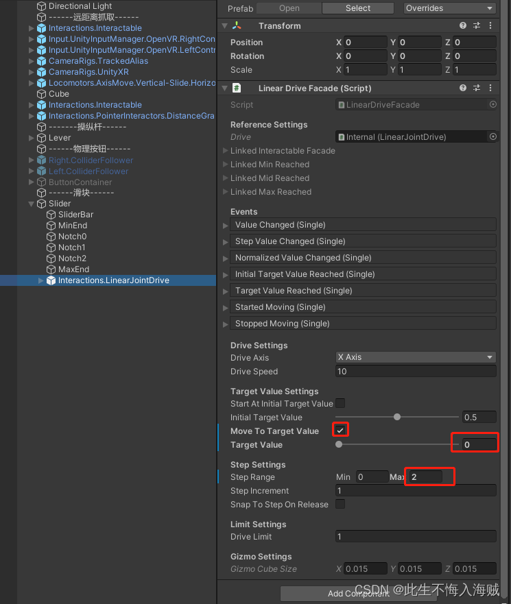 语录: 只有经历地狱般的磨练,才能炼出创造天堂的力量。 前言: 滑块是一个非常简单的控件,它允许通过沿有限的驱动轴滑动 Interactable 来选择不同的值。我们将使用线性驱动器创建一个滑块控件,该控件允许我们根据与滑…...