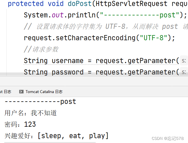 /*service方法是专门用来处理请求和响应的*/@Overridepublic void service(ServletRequest servletRequest, ServletResponse servletResponse) throws ServletException, IOException {System.out.println("3、servlet方法");//类型转换(因为它有getMethod()方法HttpServletRequest httpServletRequest = (HttpServletRequest) servletRequest;//获取请求方式String method = httpServletRequest.getMethod();//method(GET或POST)if("GET".equals(method)){doGet();}else if("POST".equals(method)){doPost();}}private void doPost() {System.out.println("post请求");}public void doGet() {System.out.println("get请求");}HttpServletRequest是ServletRequest的一个子类,而其有getMethod方法。通过继承HttpServlet实现Servlet程序