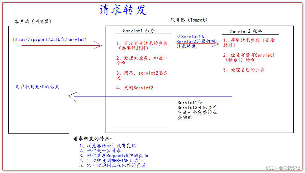 而当我们用请求转发来实现时,