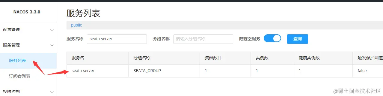 修改成功后,意味着seata将从nacos获取配置信息,同时注册自身服务到nacos中心。