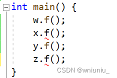 int main() {w.f();x.f();y.f();z.f();