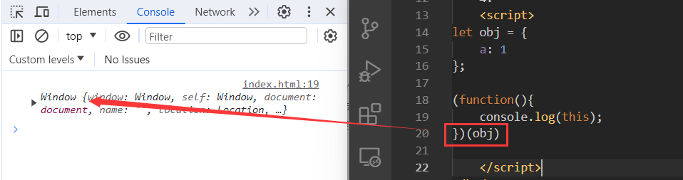 下面这里立即执行我们要看执行环境,指向相应的全局对象。