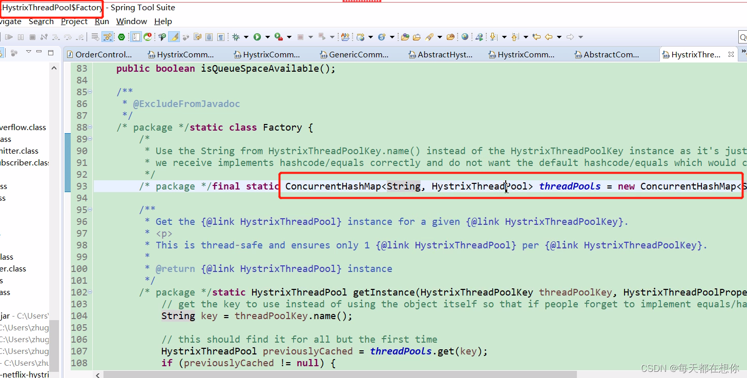 利用线程池缓存的技术,实现多个用户方法公用同一个线程池的目的,只需要多个方法,配置相同的commandKey和threadPoolKey