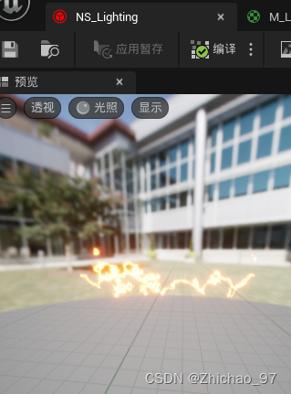 选中“条带渲染器”,设置材质为“M_Lighting”