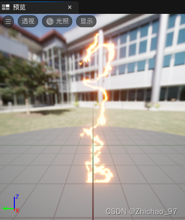 网格体选择一个平面,勾选材质重载,显示材质为在上一篇文章(【UE 材质】闪电材质)中制作的闪电材质“M_Lighting”