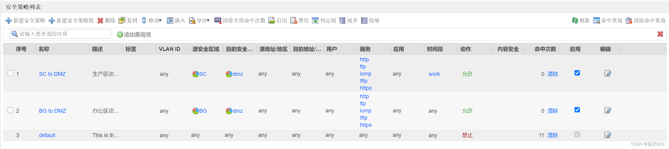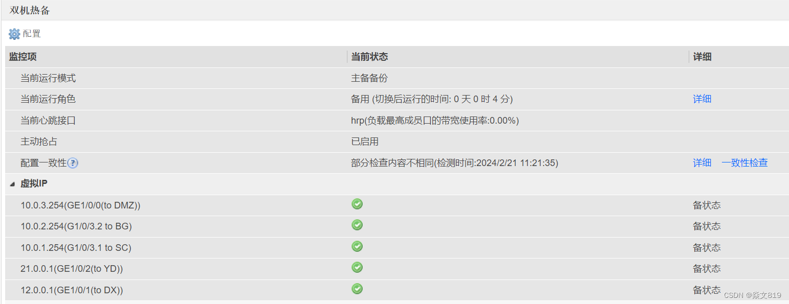 一、实验拓扑 二、实验要求 1, Fw1和Fw2组成主备模式的双机热备 2,DMZ区存在两台服务器,现在要求生产区的设备仅能在办公时间(9:00 - 18:00)访问,办公区的设备全天都可以访问。 3,办…...
